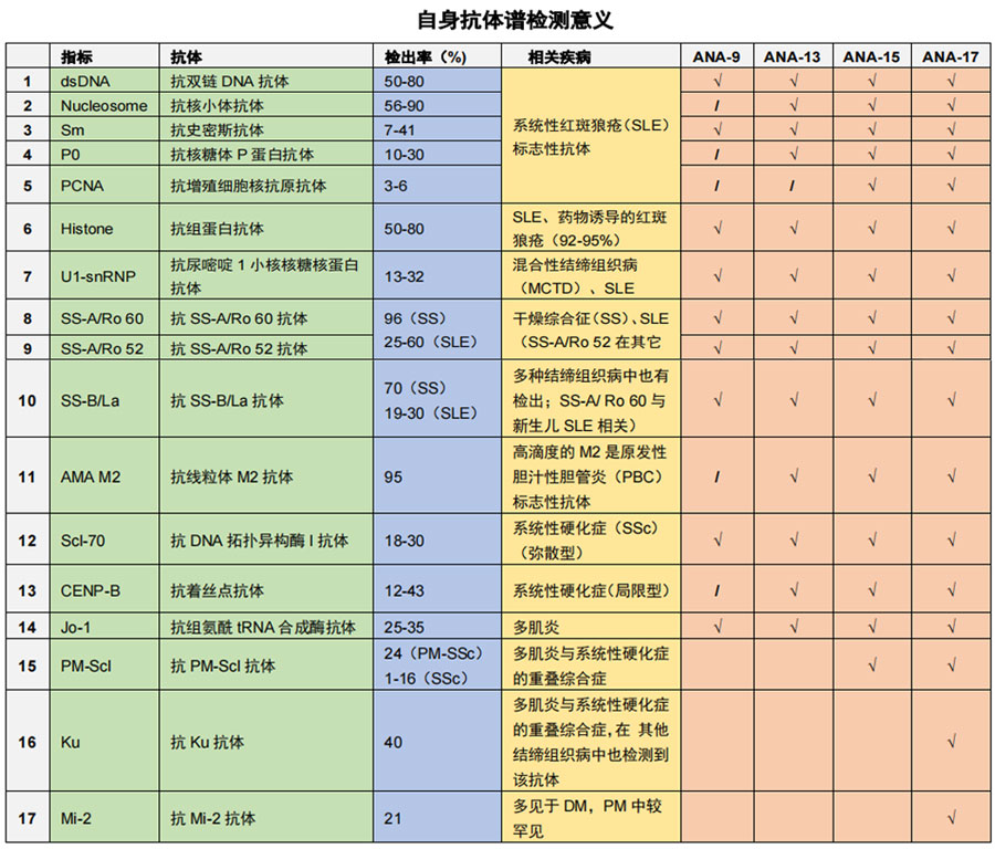 自身免疫性疾病(AID)是指機體對自身抗原發生免疫反應,而導致自身組織損害所引起的疾病。自身抗體檢測在自身免疫性疾病的診治中非常重要,對于 AID 的診斷、鑒別診斷、病情評估、治療監測及疾病預警都有重要價值。